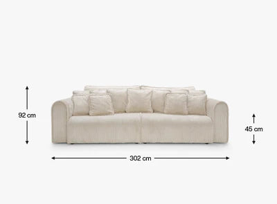 C’est plus qu’un simple canapé, c’est un espace de détente, de réunions et de soirées en famille. L’assise large et profonde (112 cm) et les coussins spacieux avec rembourrage en silicone procurent une sensation d’enveloppement doux et de confort total.