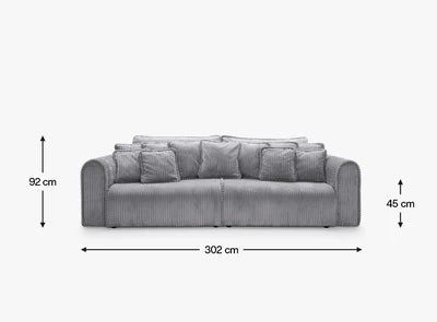 C’est plus qu’un simple canapé, c’est un espace de détente, de réunions et de soirées en famille. L’assise large et profonde (112 cm) et les coussins spacieux avec rembourrage en silicone procurent une sensation d’enveloppement doux et de confort total.