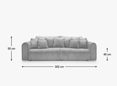 C’est plus qu’un simple canapé, c’est un espace de détente, de réunions et de soirées en famille. L’assise large et profonde (112 cm) et les coussins spacieux avec rembourrage en silicone procurent une sensation d’enveloppement doux et de confort total.