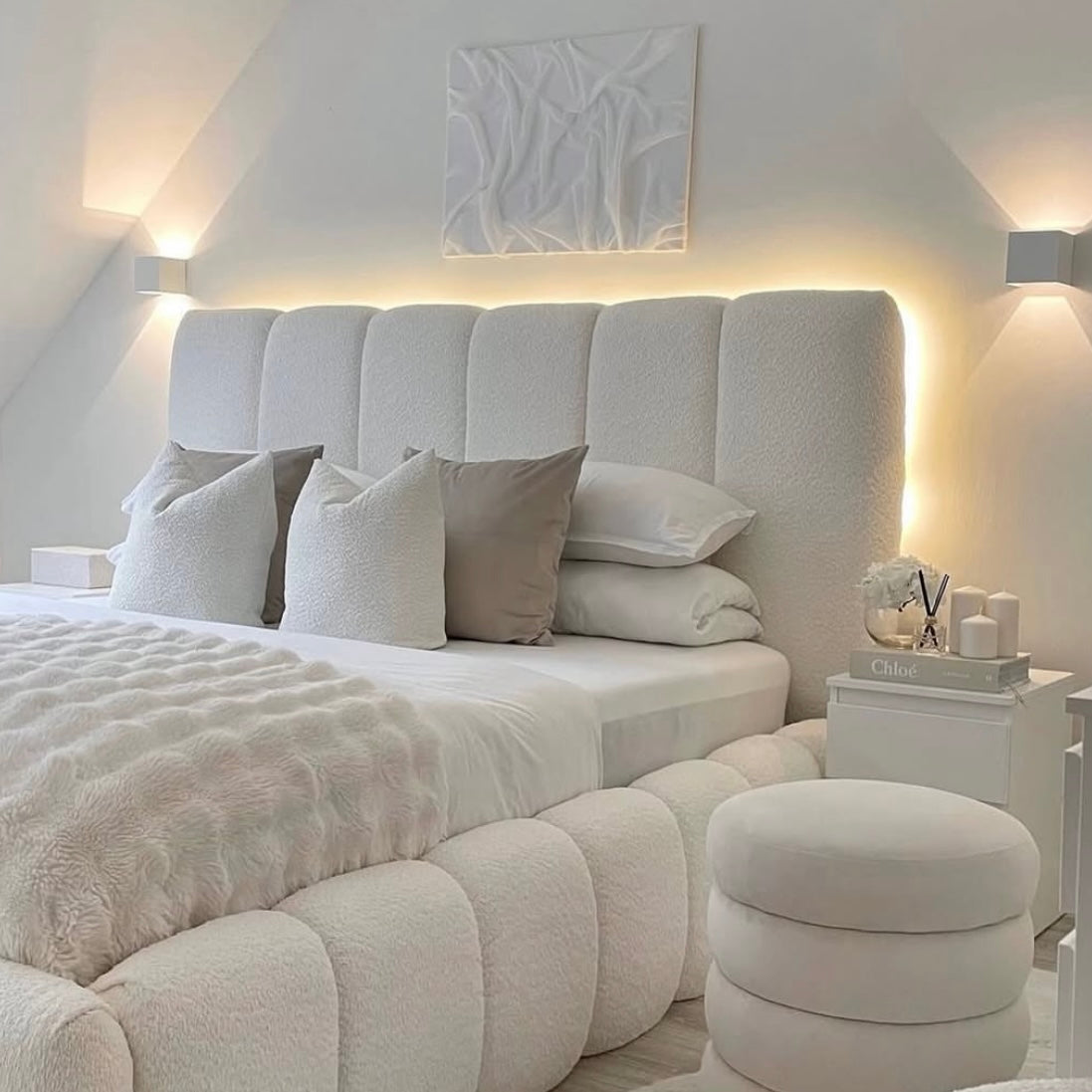 - Revêtement en Tissu Chenille : Le tissu chenille blanc ajoute une texture élégante et une touche de chaleur, tout en étant doux au toucher.