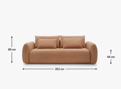 Faites attention à ses proportions – une assise large et profonde qui vous invite littéralement à vous y enfoncer. Deux oreillers plus grands et deux plus petits, conçus pour soutenir le système lombaire, créent un système de confort qui fonctionne bien à la fois lors d’un après-midi de détente et d’un marathon de films en soirée.